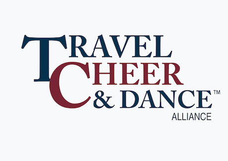 Logo of the Travel Cheer & Dance Alliance featuring stylized text in varied colors and fonts, with red, blue, and black elements.